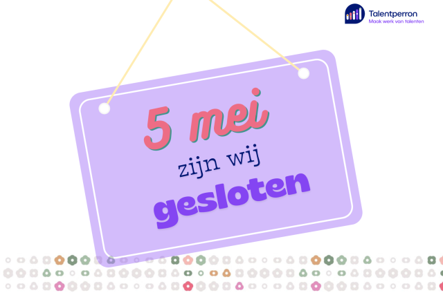 Op 5 mei - Bevrijdingsdag - is Talentperron gesloten en is er geen branchemiddag.